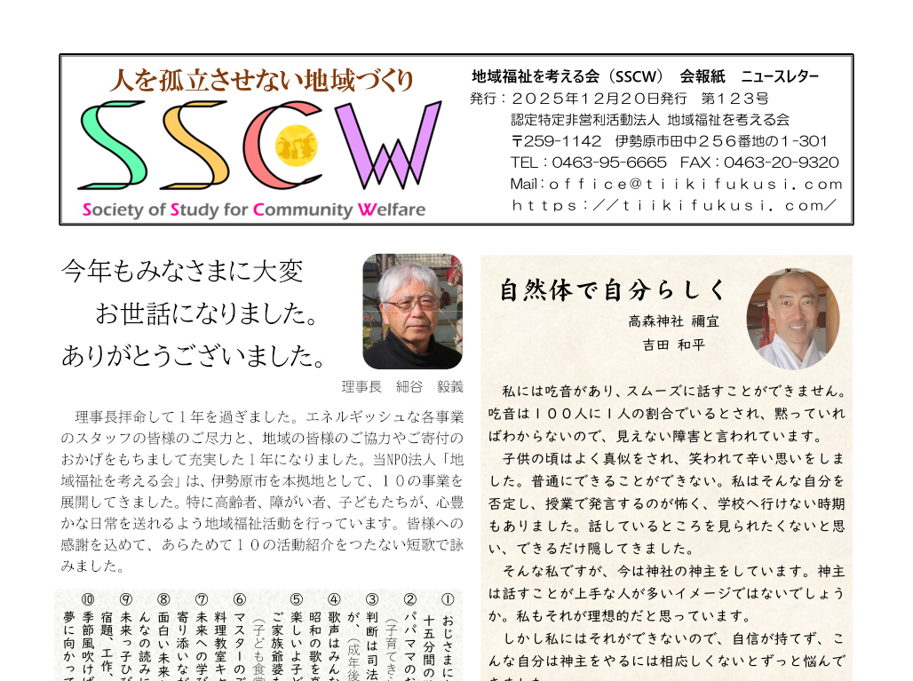 【ニュースレター】第123号を発行(令和7年12月20日号) ニュースレター 2025.12.202026.01.19 当会で隔月(原則)発行している会報誌「ニュースレター」第123号を発行しました。ぜひご一読ください。 123